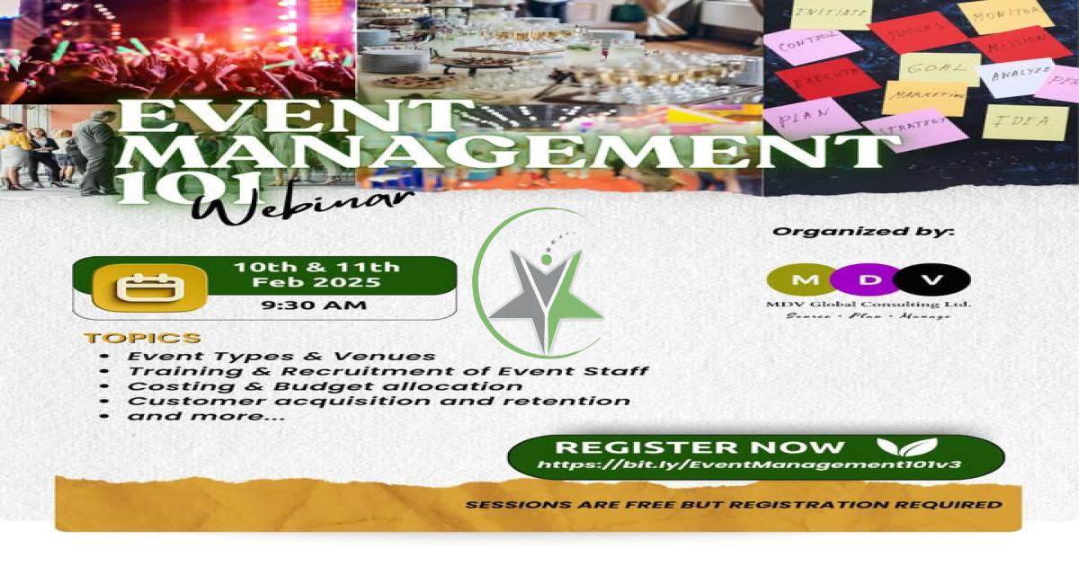 Want to master event planning? Whether you're new or experienced, this webinar will teach you the strategy behind successful events—no fluff, just real insights!📅 Date: 10th & 11th Feb🕒 Time: 9:30 AM EAT📍 Where: Online💡 Register Here: 👉🏾 https://bit.ly/EventManagement101v3A masterclass is coming soon, but this one’s on the house! Don’t miss out—sign up now! #EventManagement101 #EventsIndustry #CareerGrowth